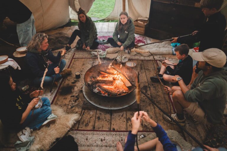 Kneed en gist het deeg tot het helemaal naar smaak is. Daarna wikkel je het om een schoongemaakte tak en hang je hem boven het kampvuur. Een gezellige plek om nieuwe kinderen en ouders te leren kennen!